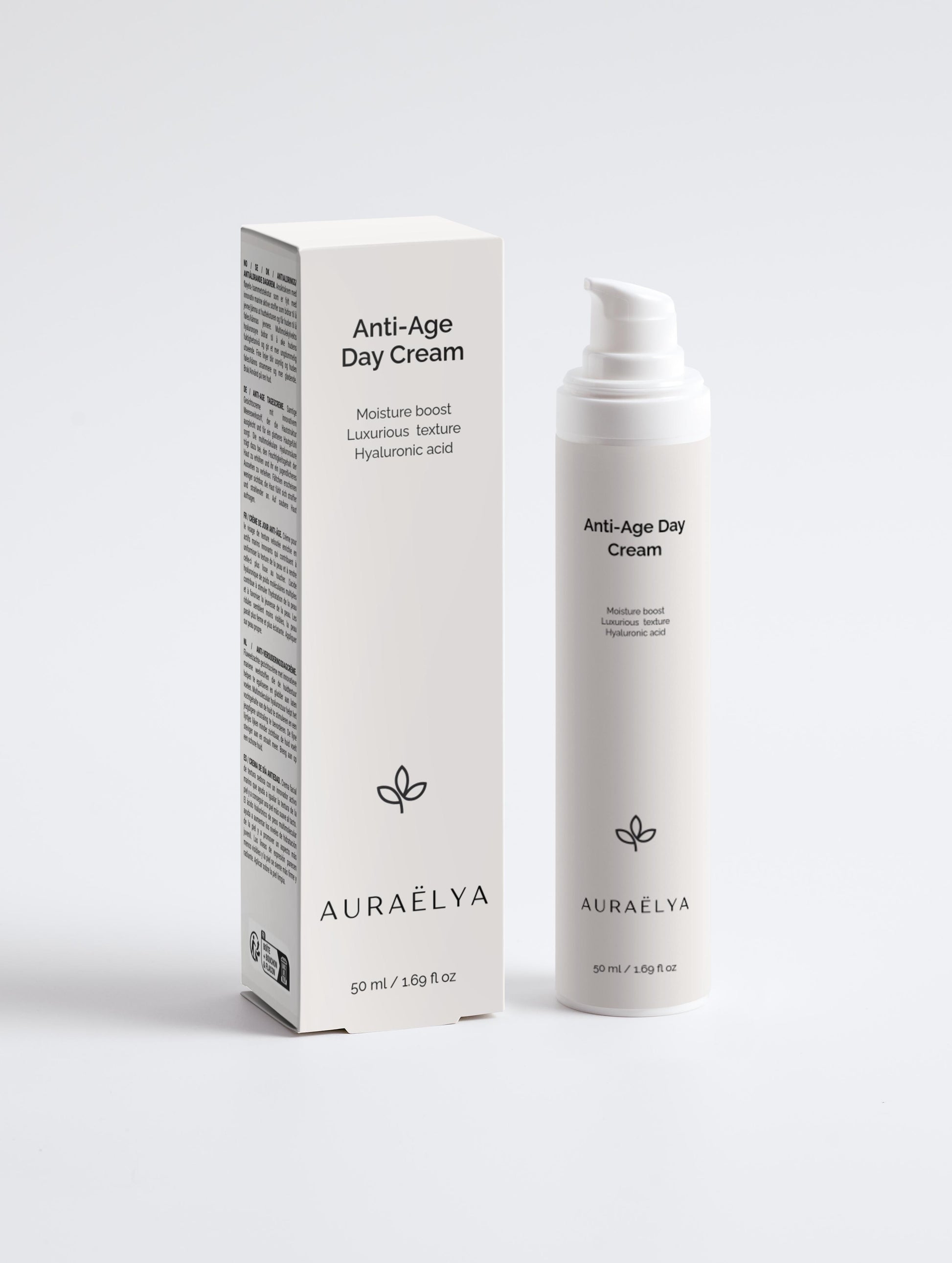 • Anti-Age Day Cream: A deeply moisturizing formula powered by multi-molecular Hyaluronic Acid to hydrate and protect skin all day long.