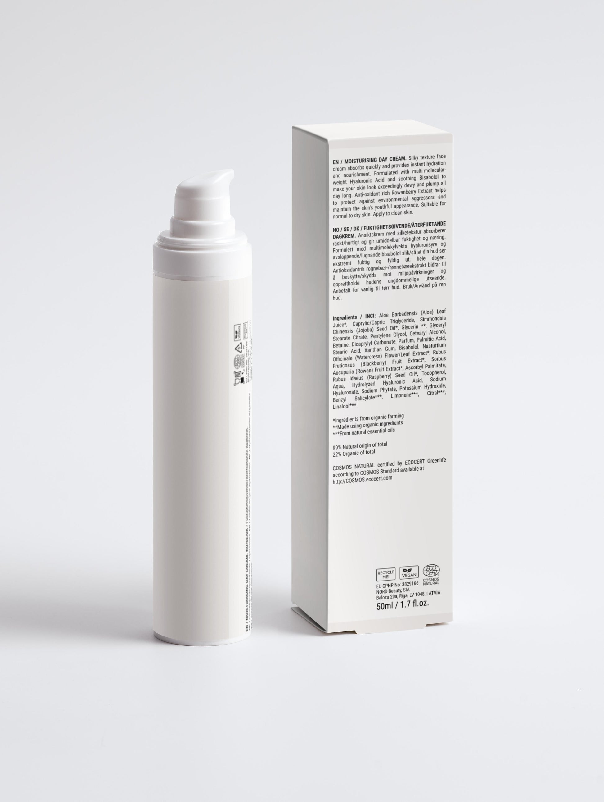 Aloe Barbadensis (Aloe) Leaf Juice, Caprylic/Capric Triglyceride, Simmondsia Chinensis (Jojoba) Seed Oil➀, Glycerin➁, Glyceryl Stearate Citrate, Pentylene Glycol, Cetearyl Alcohol, Betaine, Dicaprylyl Carbonate, Parfum, Palmitic Acid, Stearic Acid, Xanthan Gum, Bisabolol, Nasturtium Officinale (Watercress) Flower/Leaf Extract➀, Rubus Fruticosus (Blackberry) Fruit Extract➀, Sorbus Aucuparia (Rowan) Fruit Extract➀, Ascorbyl Palmitate, Rubus Idaeus (Raspberry) Seed Oil➀, Tocopherol, Aqua, Hydrolyzed Hyaluronic Acid, Sodium Hyaluronate, Sodium Phytate, Potassium Hydroxide, Benzyl Salicylate➂, Limonene➂, Citral➂, Linalool➂ ➀ Ingredients from organic farming ➁ Made using organic ingredients ➂ From natural essential oils